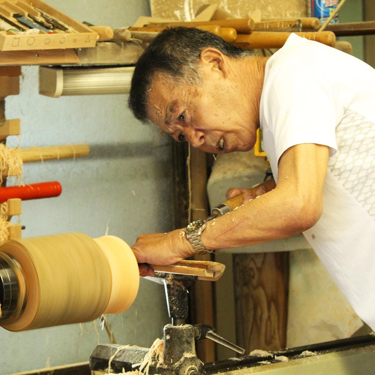 竹村さんんが木工を始めたきっかけは、第47回日本クラフト大賞・経済産業大臣賞受賞など数々の賞を受賞された時松辰夫氏(故人)との出会い。